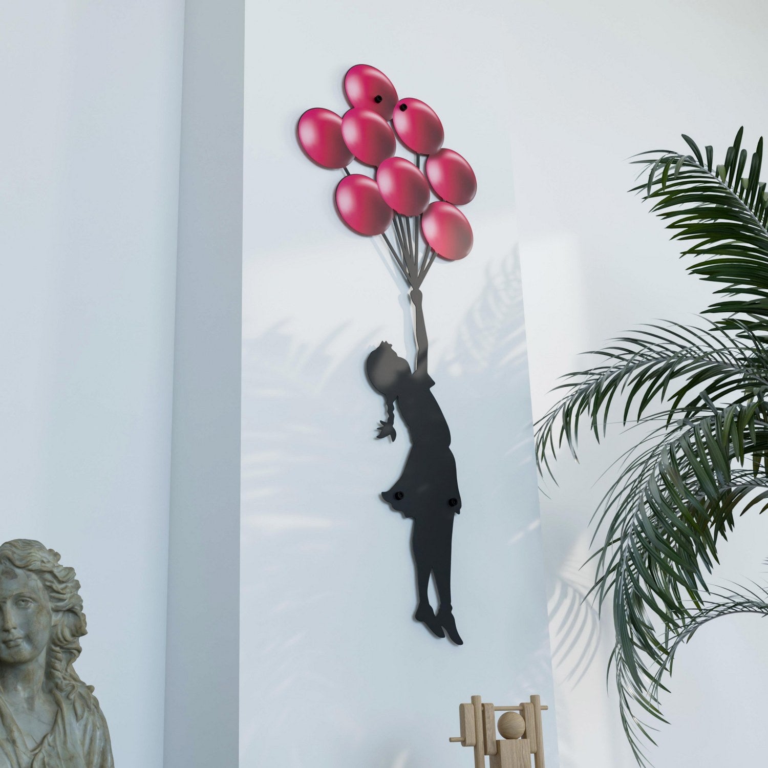 Bu dekoratif metal tablo, kaybolan masumiyetin ve özgürlük arzusunun güçlü bir ifadesi olarak, Banksy'nin sokak sanatını üç boyutlu bir forma taşıyor. Metalin dayanıklılığı ile sanatın efemer doğasını birleştiren bu metal dekor, hem çağdaş hem de zamansız bir sanat eseri sunuyor. Kırmızı balonun canlı rengi, herhangi bir mekâna dinamizm ve renk katarken, 'Balonlu Kız' silueti, izleyenlere duygusal bir etki bırakıyor. Bu dekoratif metal dekor, sadece bir duvar süsünden çok daha fazlasını vaat ediyor: bir hikaye, bir tutku, bir anlatım. Diğer dekoratif metal ürünlerimiz için tıklayınız!