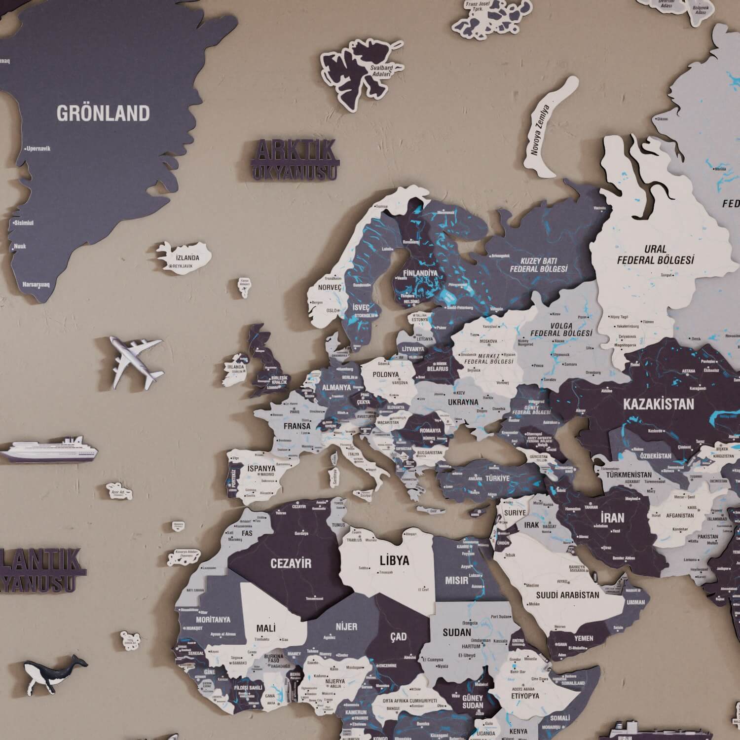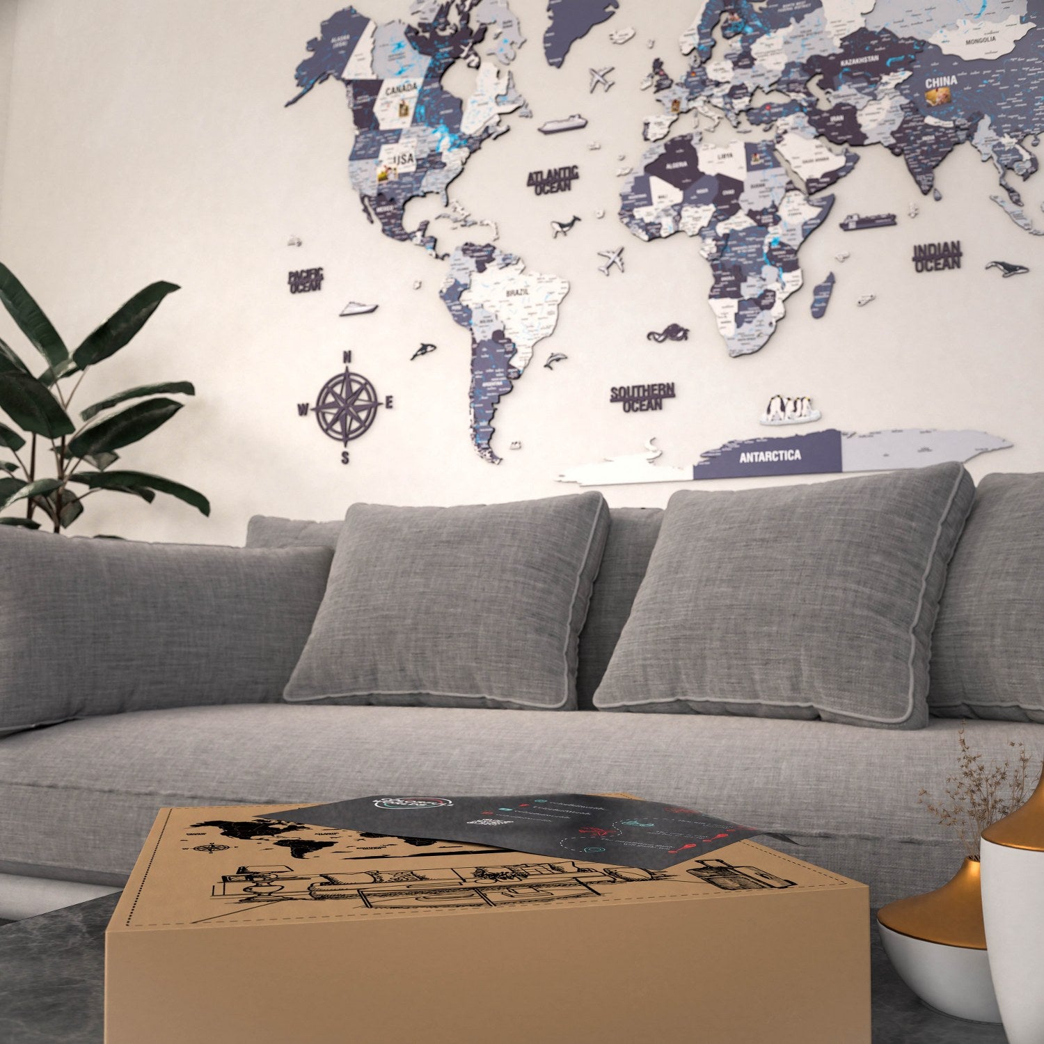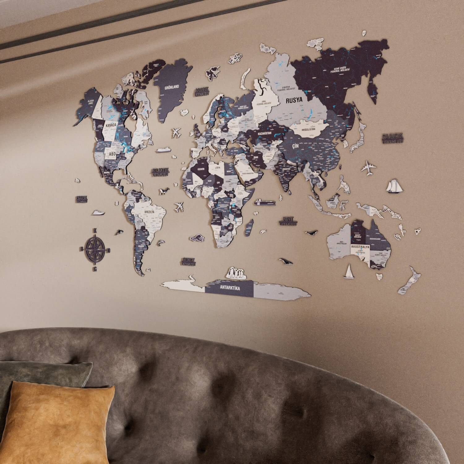 Yaşam alanınıza karakter katan ahşap dünya haritası ile ev dekorasyonunda fark yaratın. Nimbus tonlarındaki bu özel tasarım, modern 3D duvar dekorasyonu arayanlar için hem estetik hem de ilham verici bir çözüm sunuyor. Sadece bir harita değil, salonunuzda veya ofisinizde her gün bakmak isteyeceğiniz bir sanat eseridir.