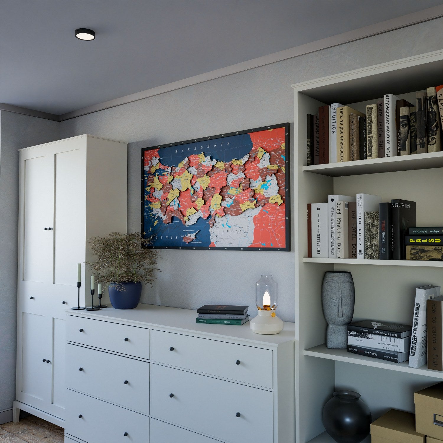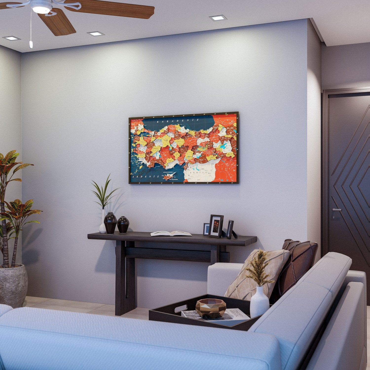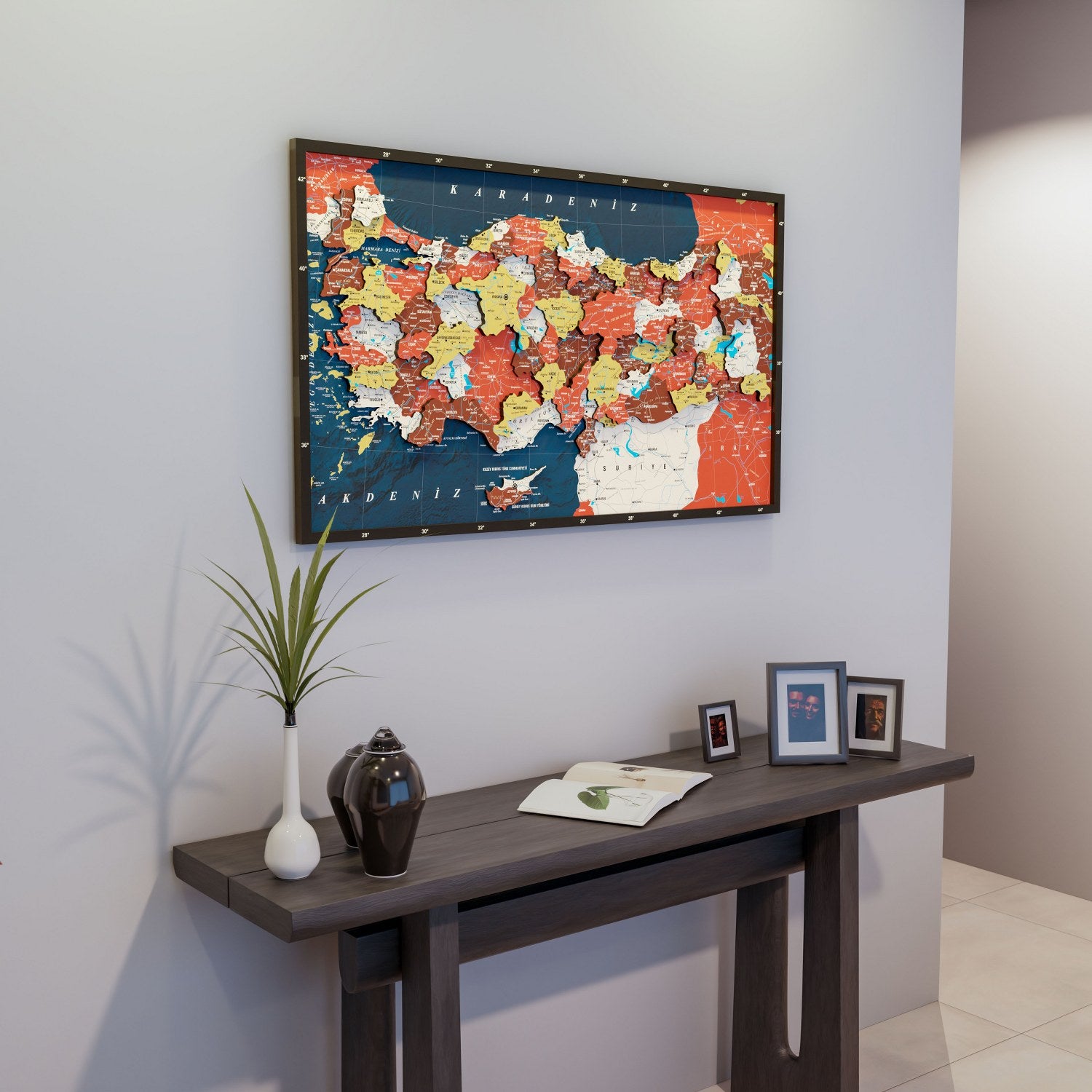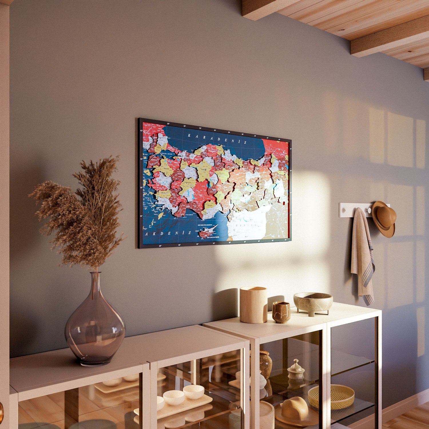 Renkli baskılı Türkiye Haritası, Türkiye’nin coğrafi güzelliklerini sanatsal bir biçimde evinize getiren özel bir ahşap duvar dekorudur. Bu detaylı ahşap Türkiye haritası, UV baskı tekniğiyle renklendirilmiş canlı katmanları ve kaliteli ahşap malzemesi ile dikkat çeker. Lazer kesimle hassasiyetle hazırlanmış parçalar, tamamen el işçiliği ile bir araya getirilerek dekorun kalitesini artırır. Hem estetik hem de bilgilendirici bir dekor olarak evinizin ya da ofisinizin atmosferini değiştirmek için idealdir. Diğer Ahşap Ülke Haritaları için tıklayın!