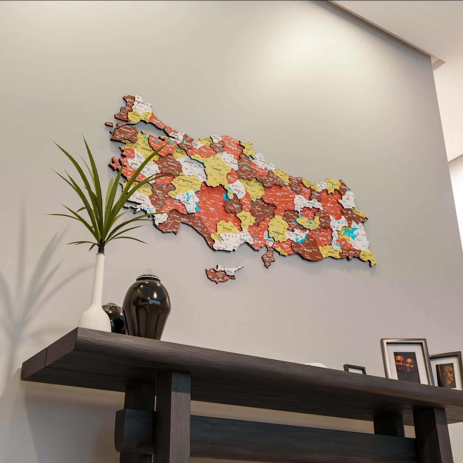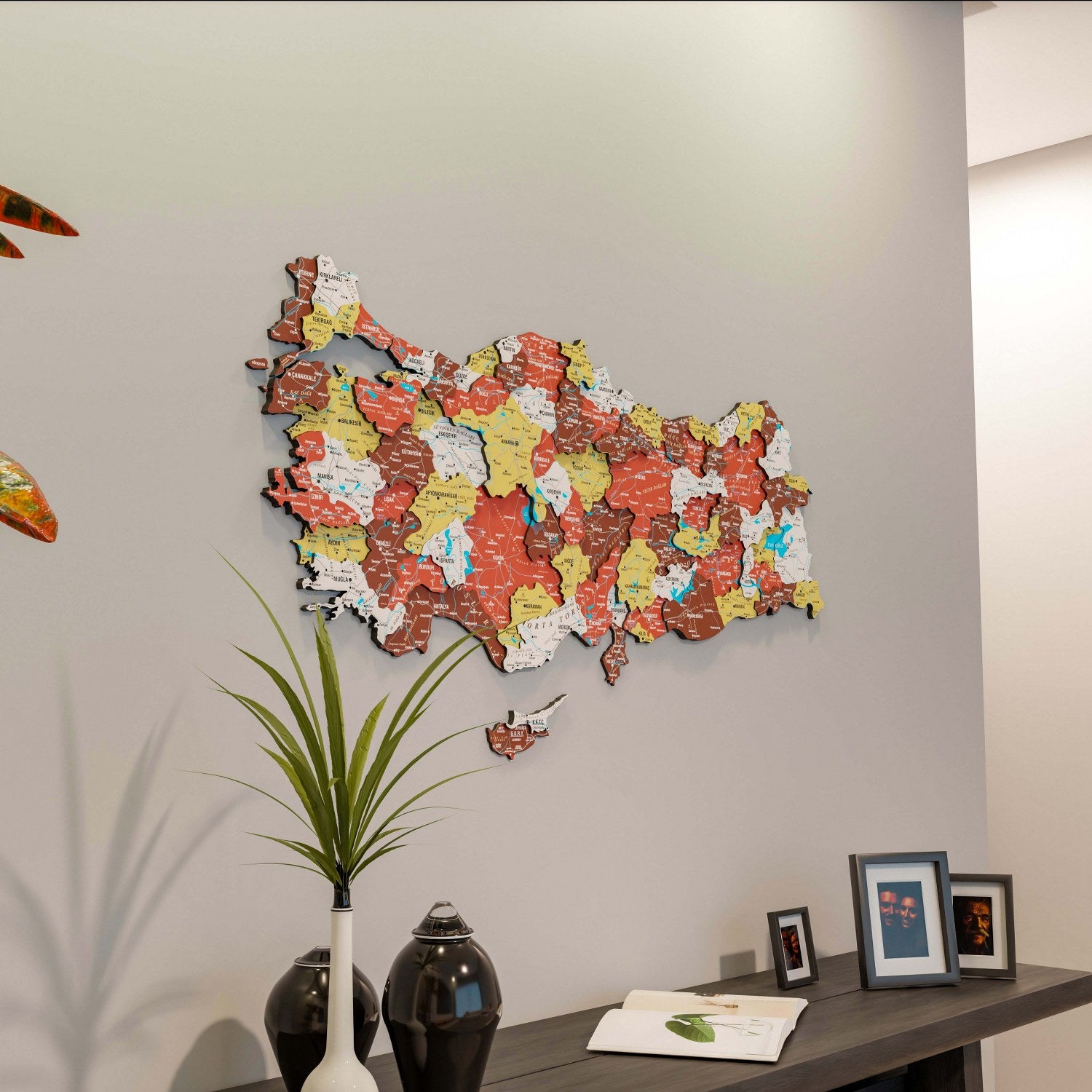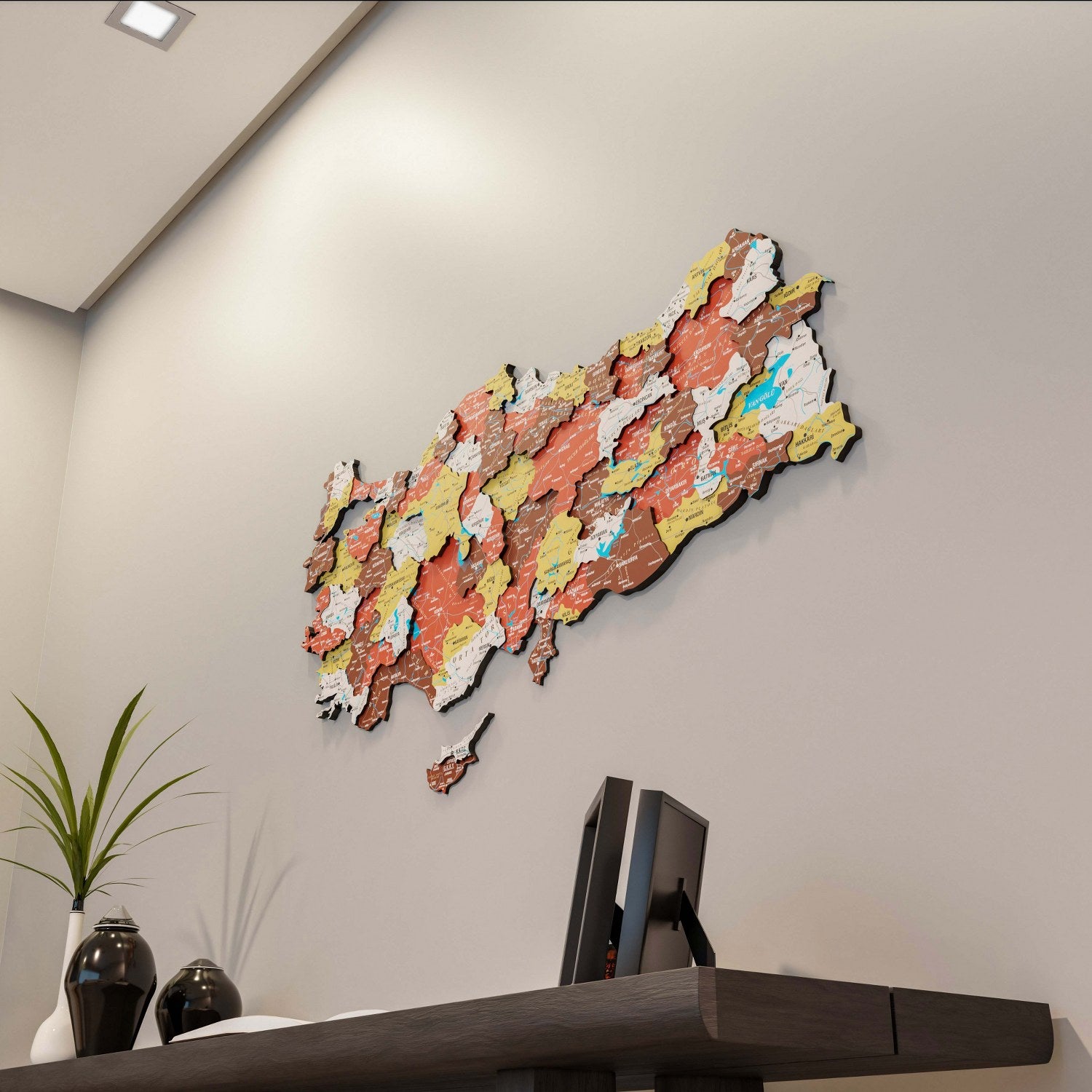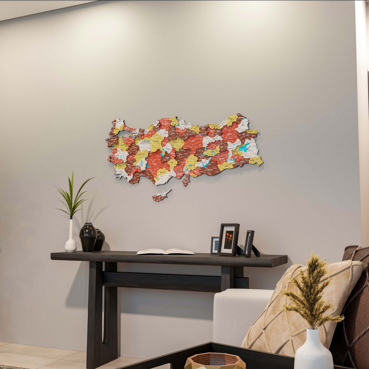 Yaşam alanlarınıza Akdeniz’in sıcaklığını ve toprağın en güzel tonlarını taşıyın. Türkiye siyasi haritası, ev ve ofis dekorasyonunda fark yaratmak isteyenler için özel olarak tasarlanmış bir 3D ahşap duvar dekoru sanatıdır. Terracotta renk tonları ile hazırlanan bu seri, Türkiye’nin tüm illerini ve sınırlarını en canlı detaylarıyla duvarınıza işleyerek mekanınıza enerji ve samimiyet katar.